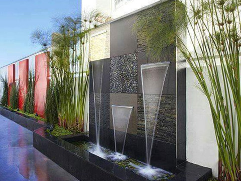 Siguiendo con más ideas, el tipo de chorro que desprende la fuente es un aspecto fundamental. Para el diseño minimalista destacan aquellos en cascada, con un ancho bastante amplio, pero poco fondo. De la misma forma, te recomendamos escoger una fuente que tenga una caída en forma de cortina o en forma de lluvia.