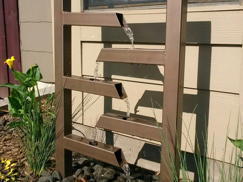 Las fuentes perfectas para un jardín minimalista también son aquellas hechas de acero corten, hierro o aluminio, pues, por lo general, tienen un tono neutro que queda bien con casi cualquier tipo de decoración.